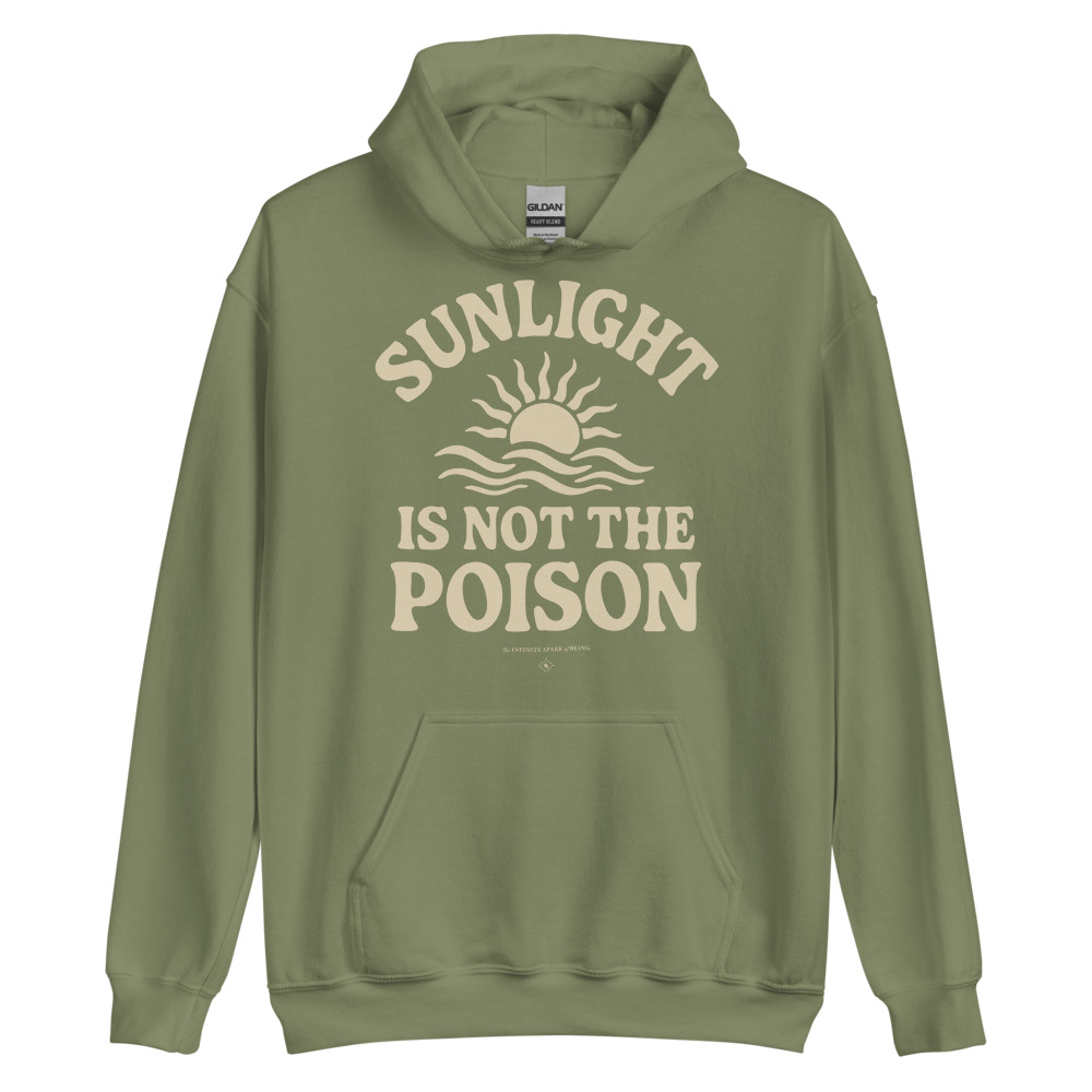 Warm truth in a cool design. This premium black hoodie with Sunlight Is Not the Poison in bold white ink is more than comfortit's a mantra. Soft fleece inside, statement energy outside. Wear it to challenge the narrative and stay warm doing it.